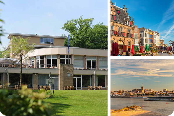 This hospitable 4-star hotel is located in the beautiful, wooded area of Berg en Dal ant at only 5 minutes from the oldest city of the Netherlands, Nijmegen. The hotel is the perfect operating base for making walking- and cycling tours through the special environment with polders, forelands, meandering dikes, rolling hills and a varied forest and heath landscape. Free walking- and cycling tours are available at the reception. The hotel is easily accessible both by car and by public transport. Railway station Nijmegen is located at only 4km from the hotel. Take a taxi or bus 8 (bus stop 200m from the hotel). Do you prefer to go shopping? Then, visit Nijmegen and the German Kleve!